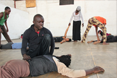 After the training, we go back to the WHY YOU ARE HERE experimentation. But this time the dancers had time to think and prepare it. The content is often clearer. A lot about being shy in the way to speak and stage this. About bags, travelling, carrying a heavy bag. About dancing without dancing (as it is not allowed), about being together on stage, bringing others. A bit more political too: one woman is brings high heels, and asks a guy to walk with it. She shows him how to, with authority. And another takes 5 dancers, stands them on a line in the middle of the bi frontal space, and asks them to sing their national anthem. And also some singular propositions, very small, minimal… During the group discussion I ask the dancers to talk about the places where they usually perform and for whom. I envisage they will talk a bit, and then I'll put on the table the questions of emancipation and partage du sensible, by Rancière, but all of them speak longly about multiples experiences, and we ran out of time. But it's great as we learn a lot about the contexts in which they are, how they deal with it. There is a lot of similarities between the countries where they come from as their practice is quite marginale and highly instrumentalised. They dance for the politicians (with the power directly expressed on the bodies, through types of dance, moments you perform, and the fear of performing in front of such people), for the gurus (when the guru moves, you moves the performance into his direction), they dance for the tourists (not so much in fact), they engage with disabled children, with kids, with prisoners, families, communities, with a lot of specific audiences. They of course perform in the CCF for foreigners (white) and artist audiences (and these places are high spaces of validation for their non conventional practices). The discourse about educated and non-educated audiences emerges too, very clearly, as as evidence. The picture is quite scary, about what they have to face as dancers, and how they deal with it in their social, cultural and political contexts. They really try to push, to defend contemporary dance, to engage with non-conventional audiences, villages, to be political, to exist as individuals, but the space is very small.